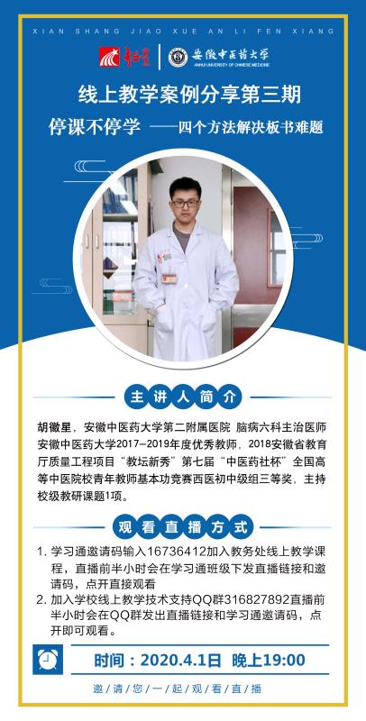【线上教学系列】安徽中医药大学第三期线上教学优秀案例分享直播通知